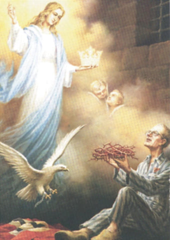 Father Maxmilian died on the vigil of the Feast of the Assumption of our and his Lady into Heaven. What the world, with the world's eyes, saw was an emaciated body brutally tortured, wasted away, desecrated by his forced nakedness-more bones than flesh. But witnesses testified when they saw him, he was shrouded in a flood of light, almost transfigured. He looked as if he were in ecstasy. Had Jesus and Mary come to accompany him home?