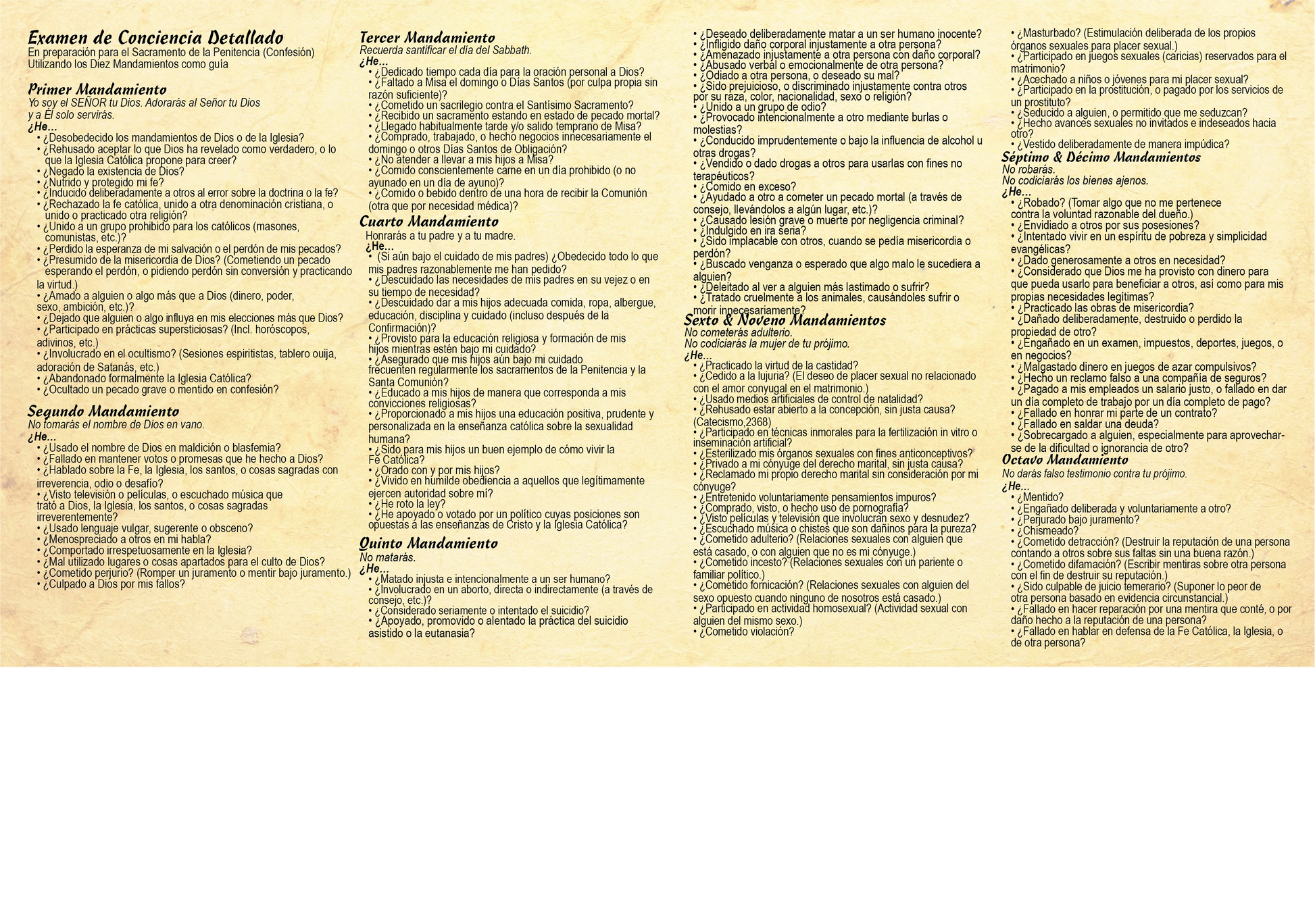 Detailed Examination of Conscience - Prayer Card -SPANISH (c)