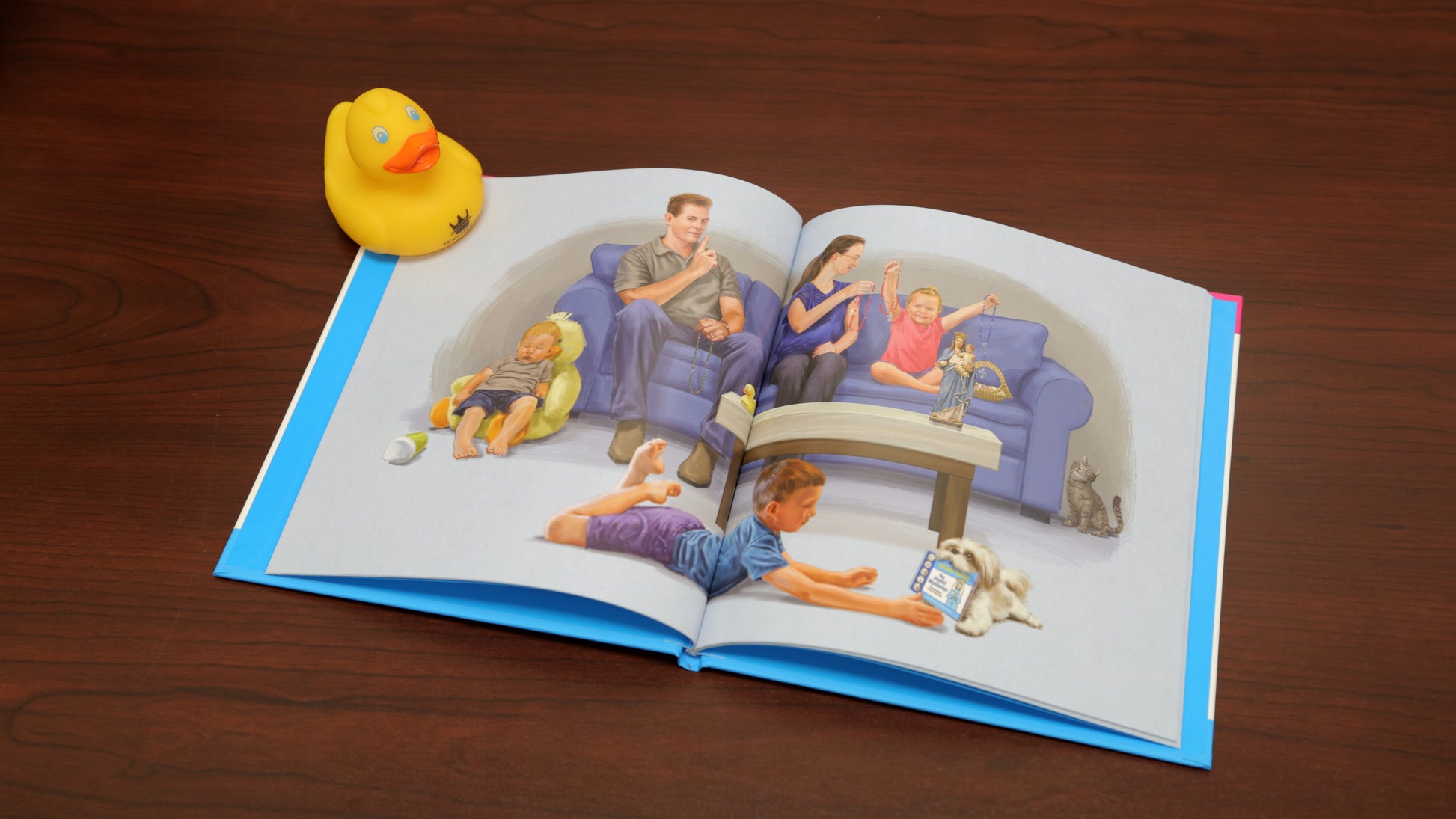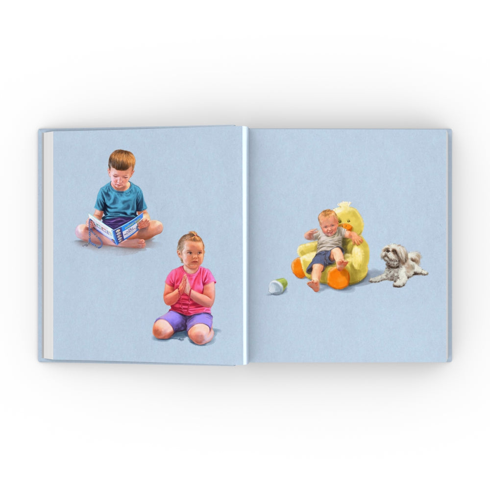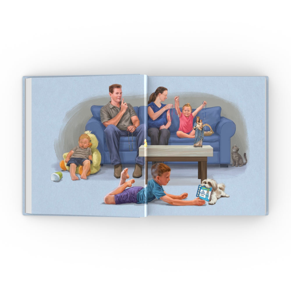 The Family Rosary is always an...interesting time. Join Lucy and Patrick, five-year-old twins, as their family prays the Rosary at the end of a long day--with a very tiredย Mom and Dad!