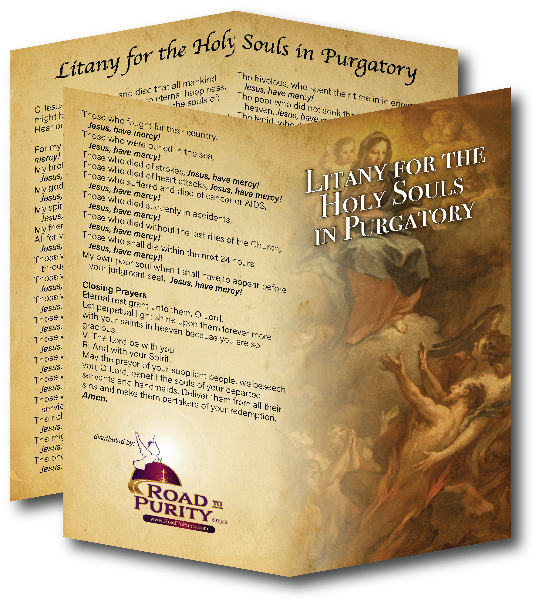 NEW! Litany for Holy Souls in Purgatory - Prayer Card / 3" x 6" folded (c)