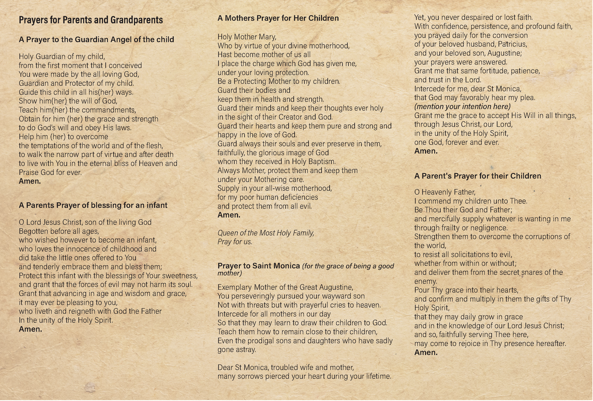 Prayers for Parents and Grandparents - Prayer Card / 3" x 6" folded (c)