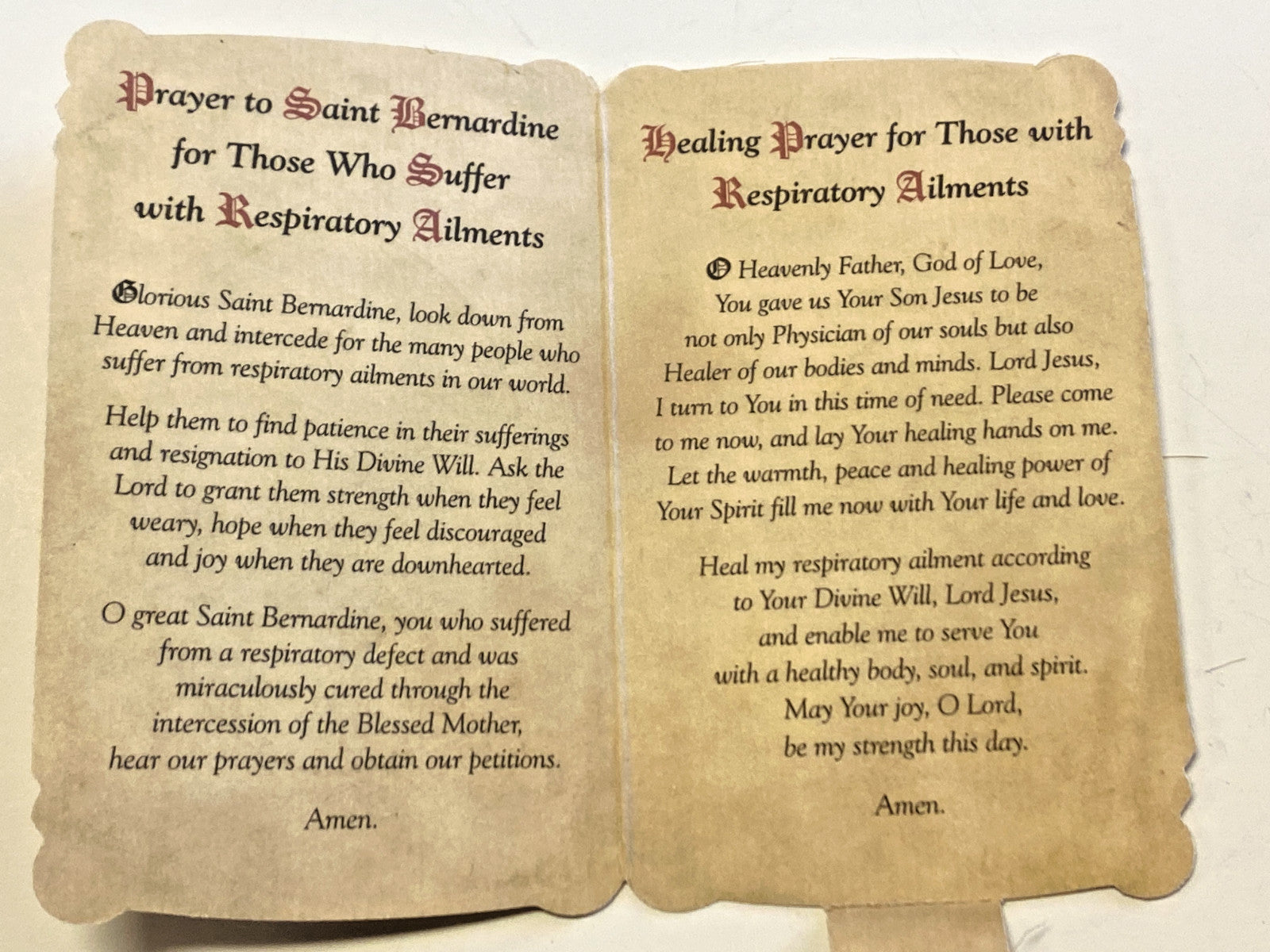 "Respiratory Ailments" Prayer Folder + Medal, New