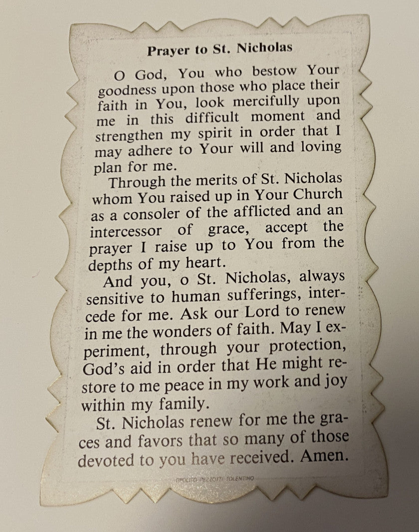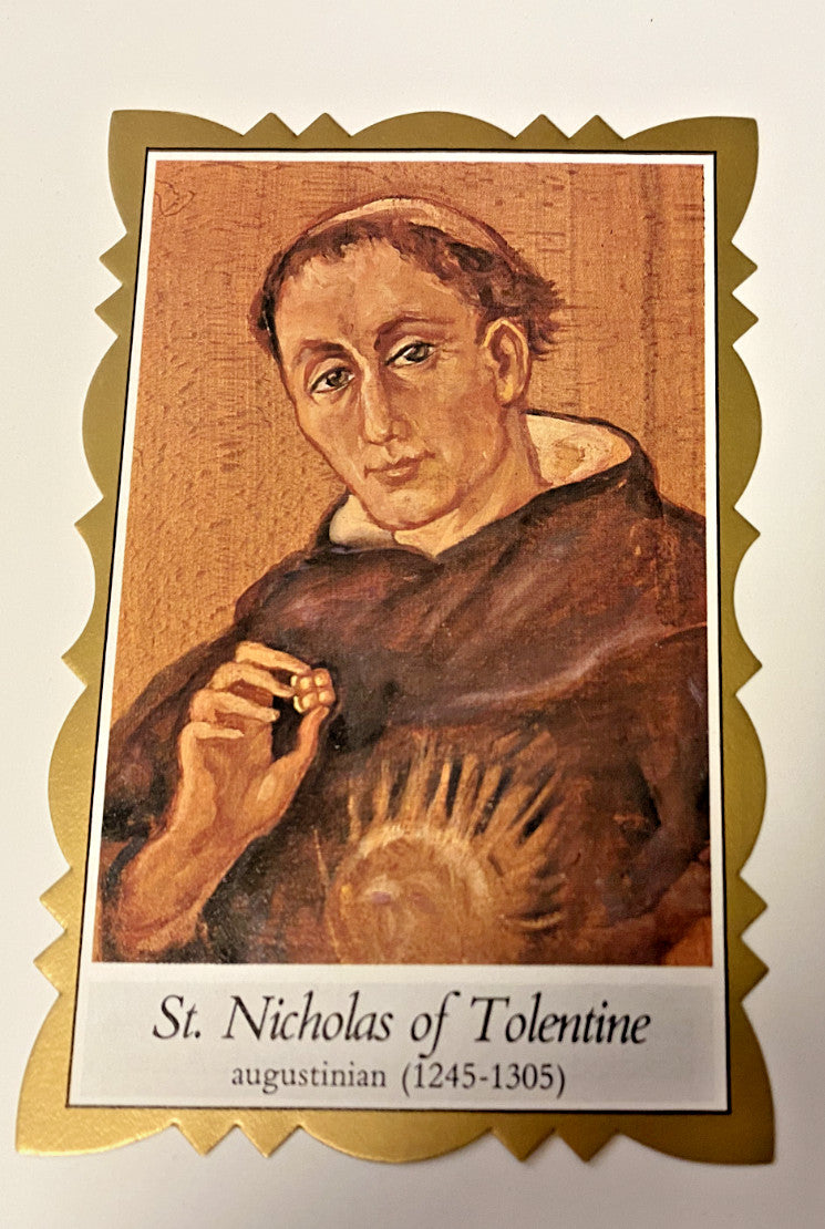 Saint Nicholas of Tolentino Scalloped Prayer Card, From Italy