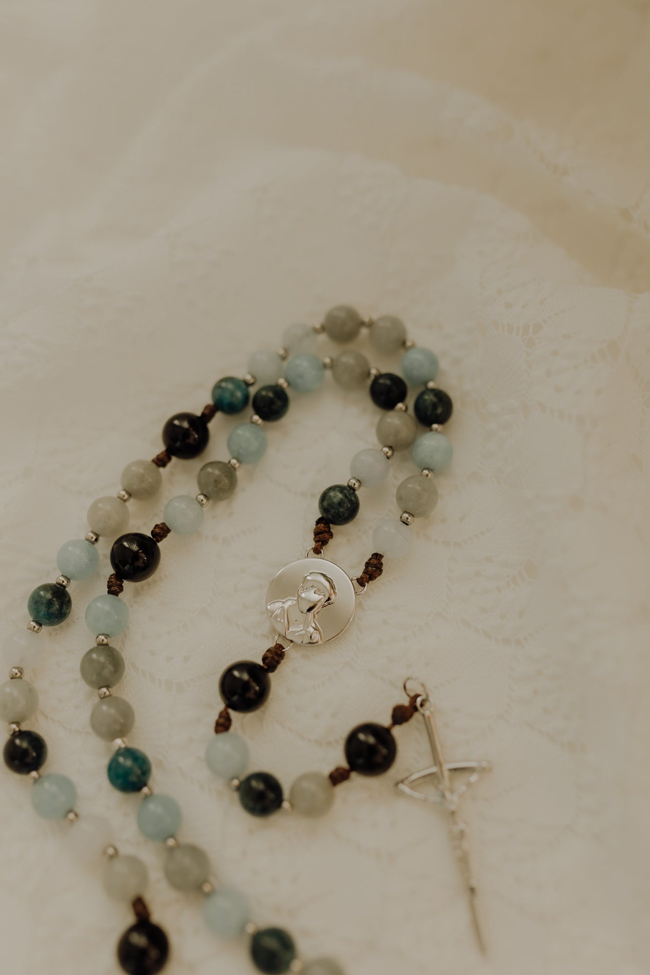 Our rosaries are made with natural gemstones, so each rosary will vary slightly.
