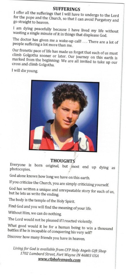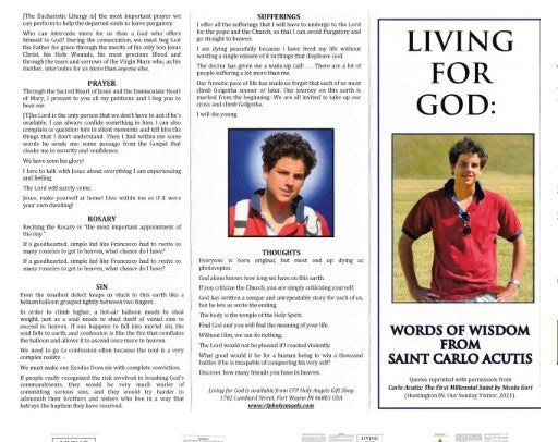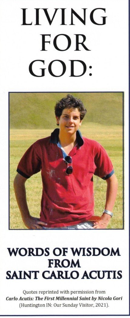 Blessed Carlo Acutis, (Apostle of the Eucharist) Living for God, Tri-Fold, New