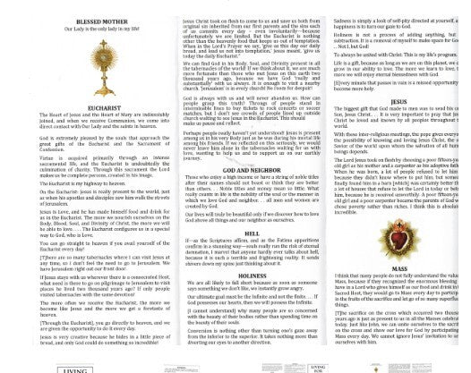 See pictures for close up and how He described Living for God and his words of wisdom: The Eucharist, God & Neighbor, Hell, Holiness, Jesus, Mass, Prayer, Rosary, Sin, Sufferings & Thoughts.