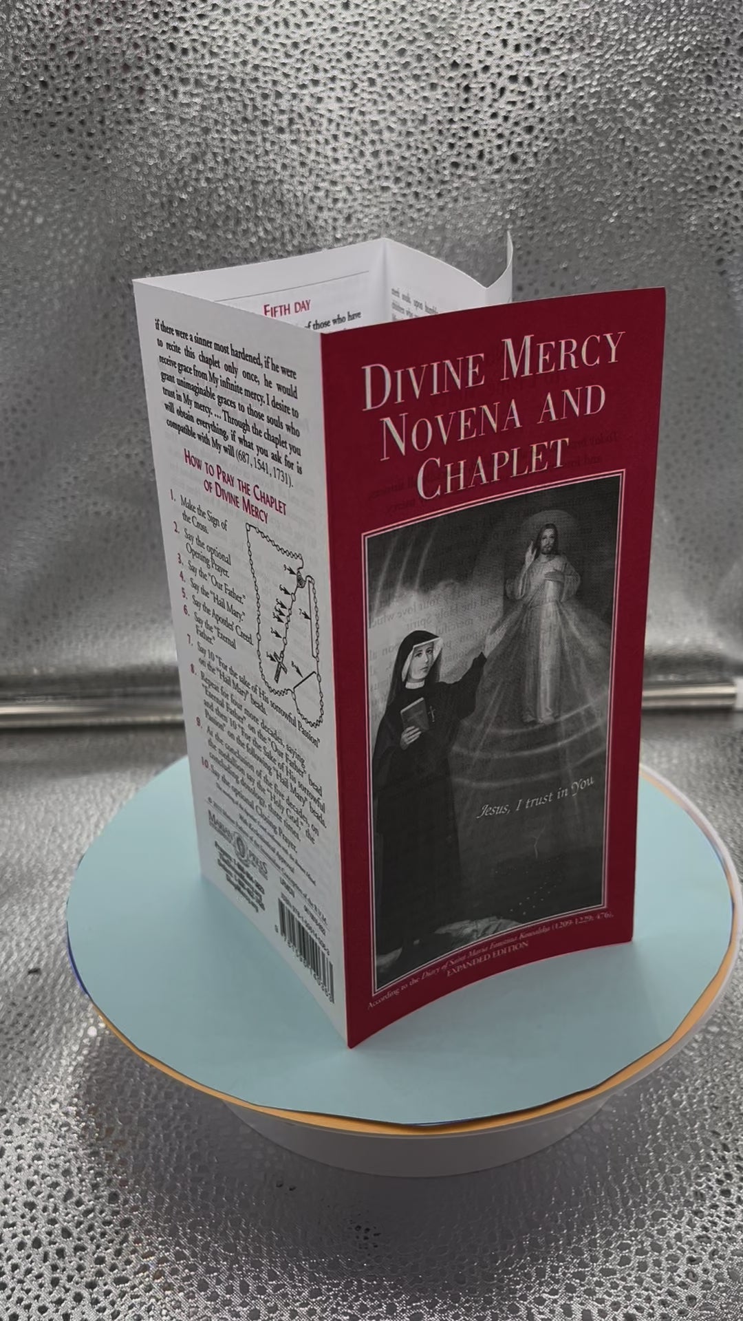 This 10-panel "Divine Mercy Novena & Chaplet" pamphlet is the most popular pamphlet produced by the Marian Fathers , with one and a half million copies distributed annually throughout the world. Includes the Divine Mercy Novena as it was given to St. Faustina by Jesus, the Prayer of the Divine Mercy, and simple illustrated instructions on how to recite the Chaplet of Divine Mercy.