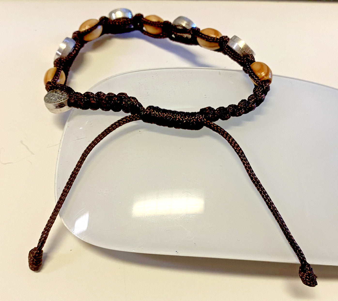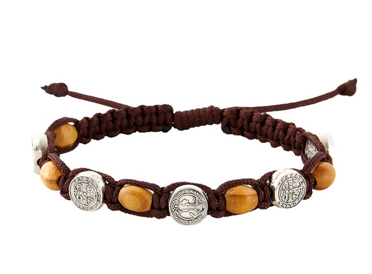 You are purchasing a very nice adjustable brown cord bracelet with medals of Saint Benedict along some light brown wood beads giving it a very nice look.