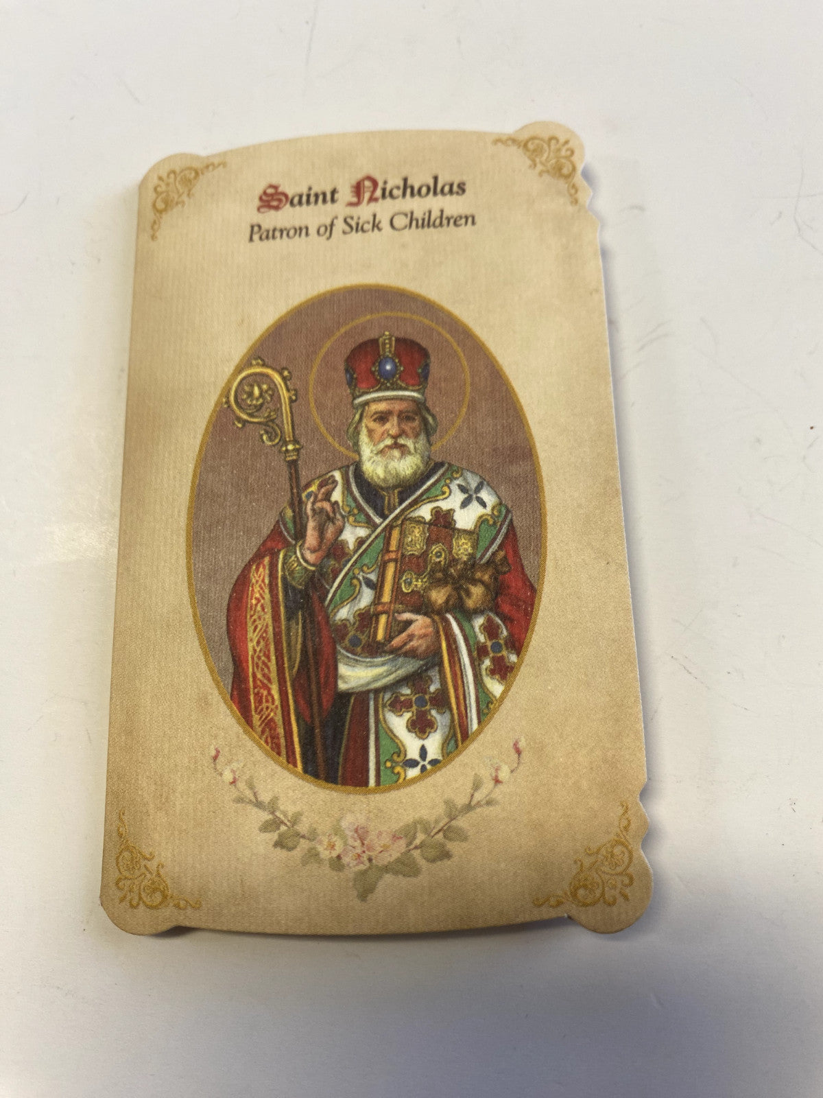 You are purchasing a very nice prayer folder with a healing prayer for those children that are sick. It also comes with an oxidized medal with his image. Saint Nicholas is also known as Saint NIcholas Bari or the wondermaker. He was known for his charity and generosity. There is a brief bio on the back.
