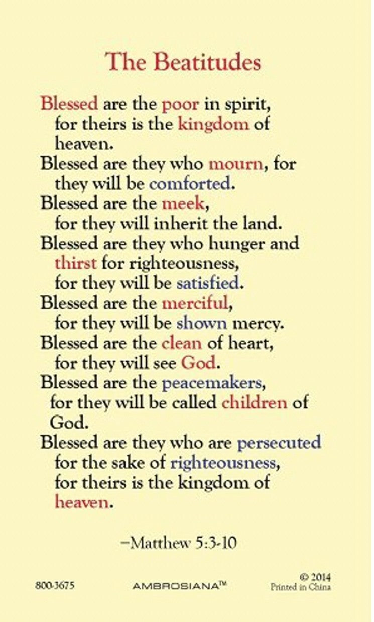 "The Beatitudes" Laminated Card with image of Jesus, New #PCL-55